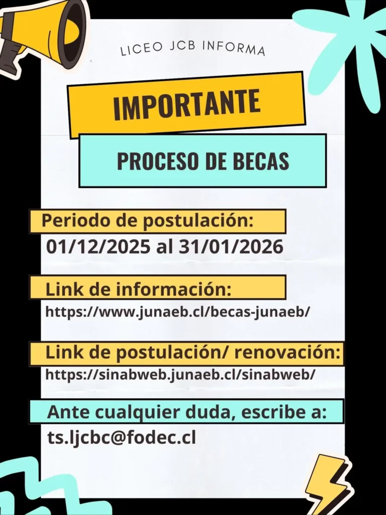 SE INICIÓ EL PROCESO DE RENOVACIÓN Y POSTULACIÓN DE BECAS JUNAEB 2025-2026.